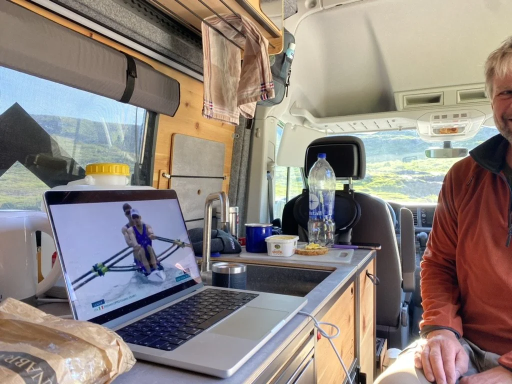 Zwei Ruderer im Camper